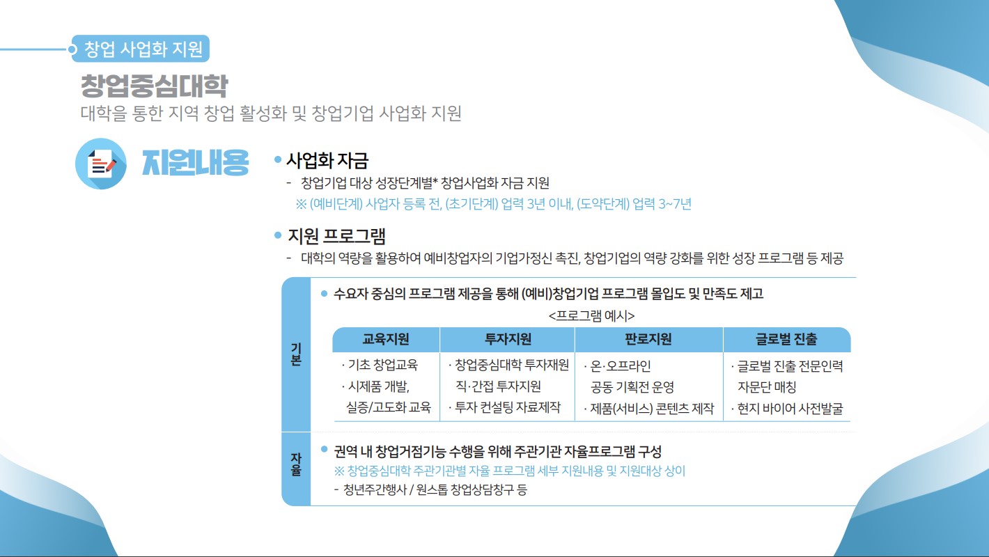 4. 창업중심대학 : 대학을 통한 지역 창업 활성화 및 창업기업 사업화 지원