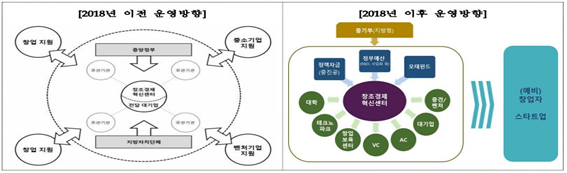 창조경제혁신센터의 운영방향(출처 : 관계부처합동, 창조경제혁신센터 세부 운영방안, 2018)