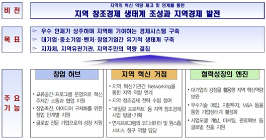 | 센터 기능 | 창업, 중기지원, 특화산업 지원 등 기능 일률부여 | 초기창업 + 투자기능 집중, 센터별 특화 |